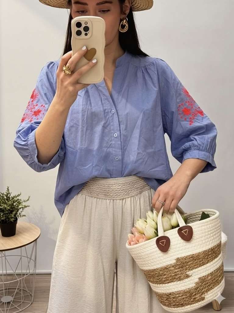 Blouse brodée manches 3/4
