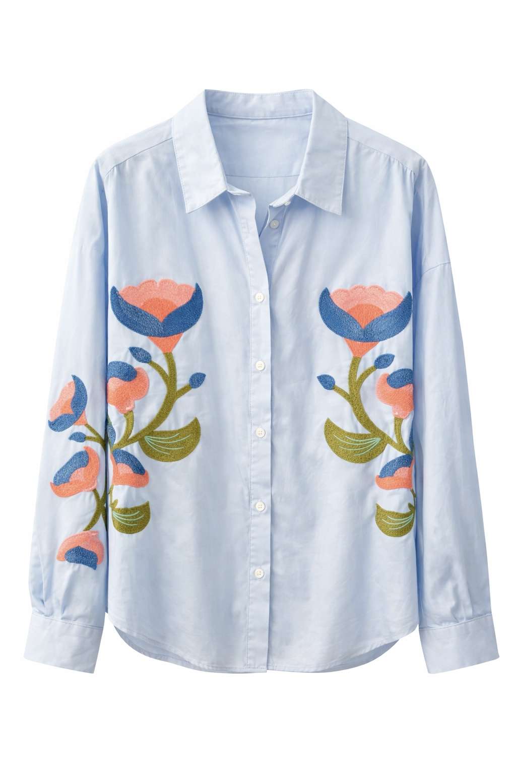 col chemisier – fleurs brodées de chaque côté – manches à boutons