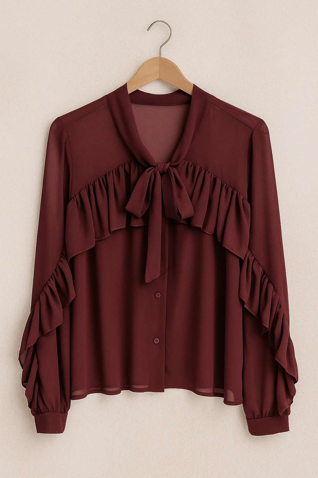 Chemise bordeaux à volants
