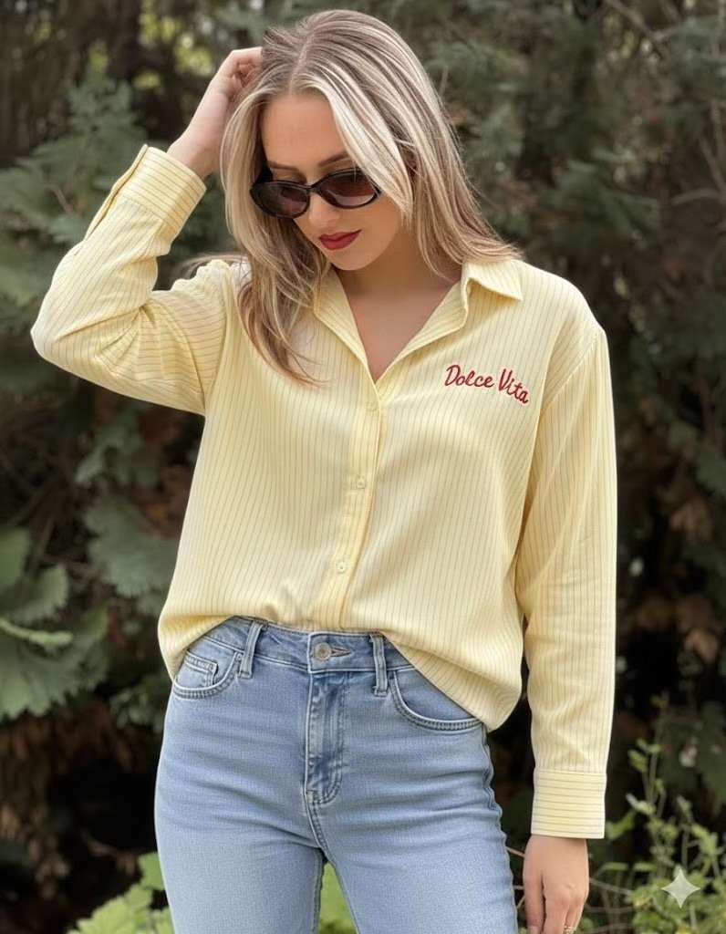 col chemisier – rayures – motifs brodé Dolce Vita – manches à boutons