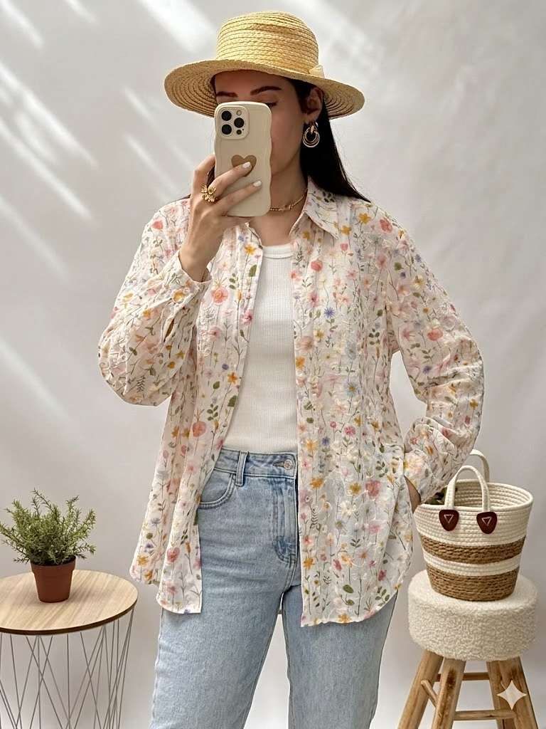 col chemisier – fleurs brodées – manches à boutons – débardeur compris – deux coloris disponibles