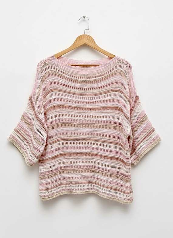Maille fine ajourée – manches 3/4 larges et évasées