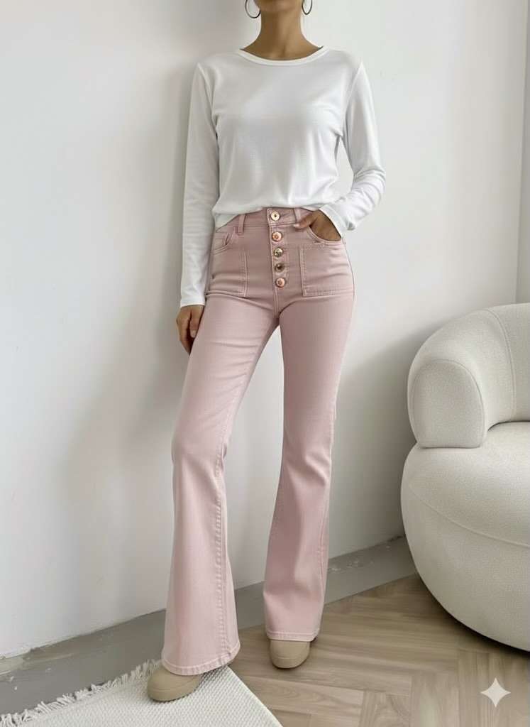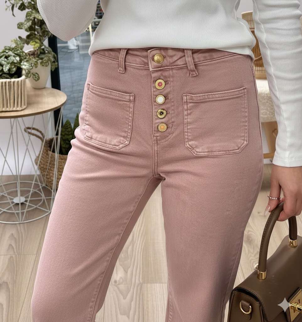 Jean bootcut taille haute rose