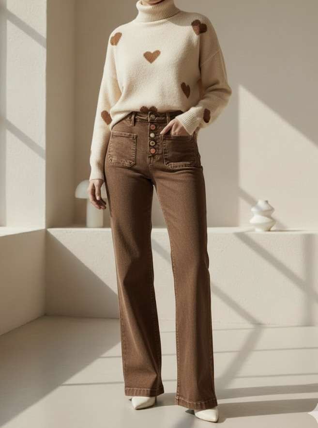 Coupe bootcut – taille haute – matière stretch – fausses poches