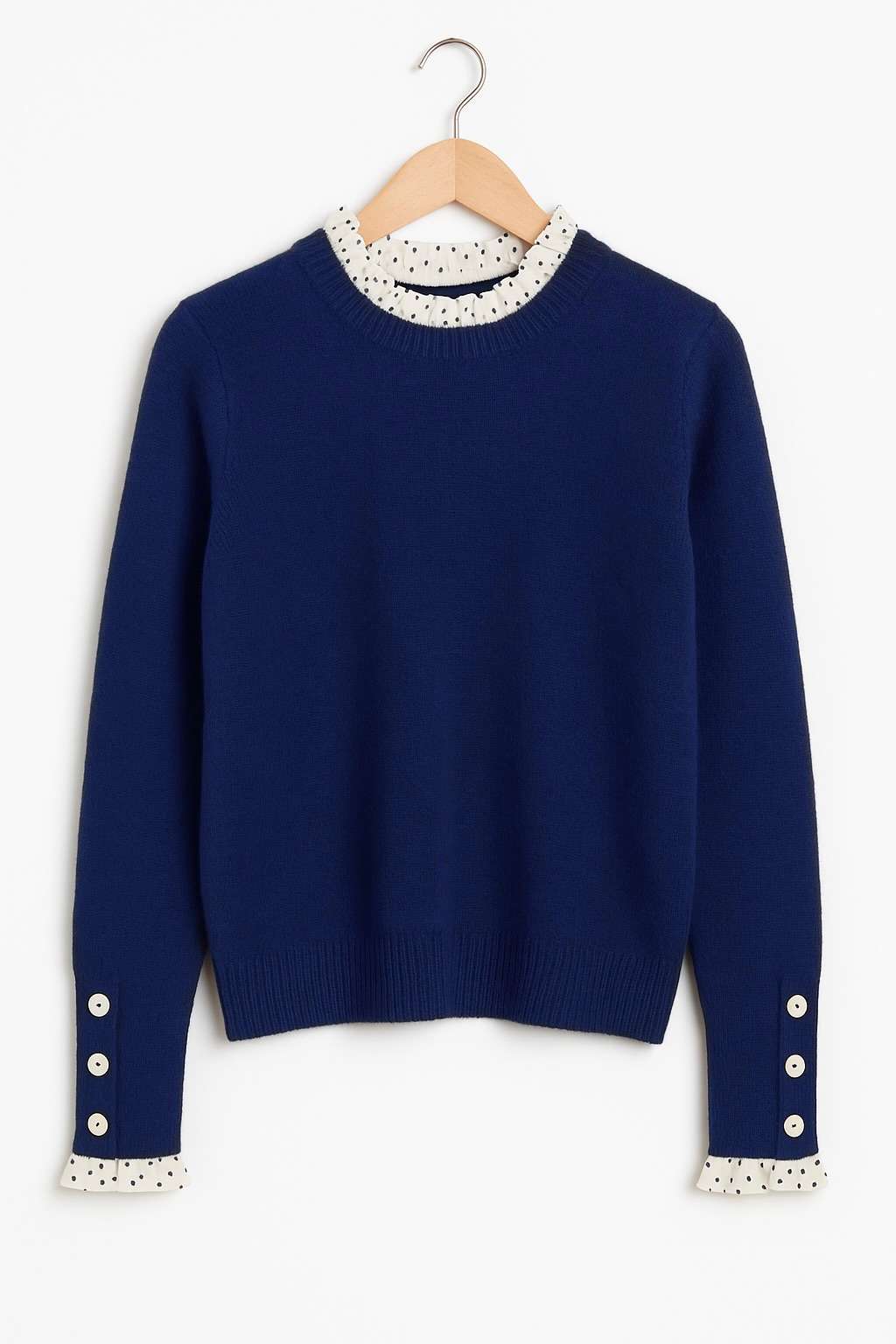 col rond à froufrous et pois – manches resserrées avec boutons avec froufrous