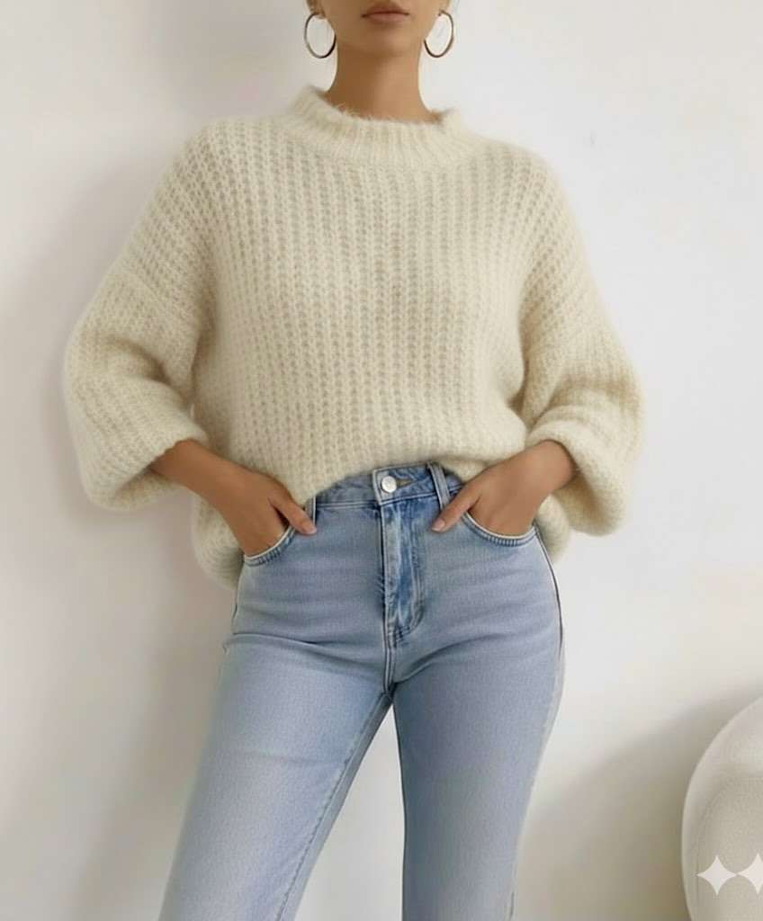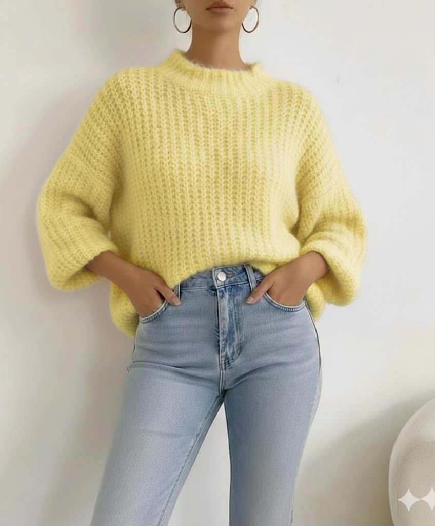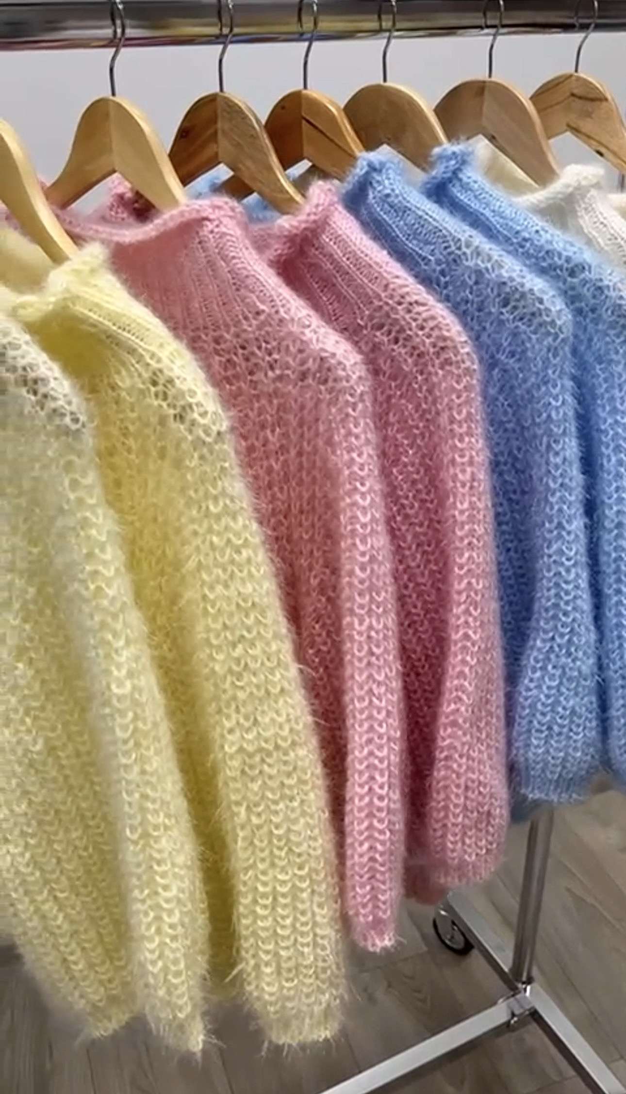 maille épaisse et ajourée – plusieurs couleurs pastels disponibles – col rond – manches évasées