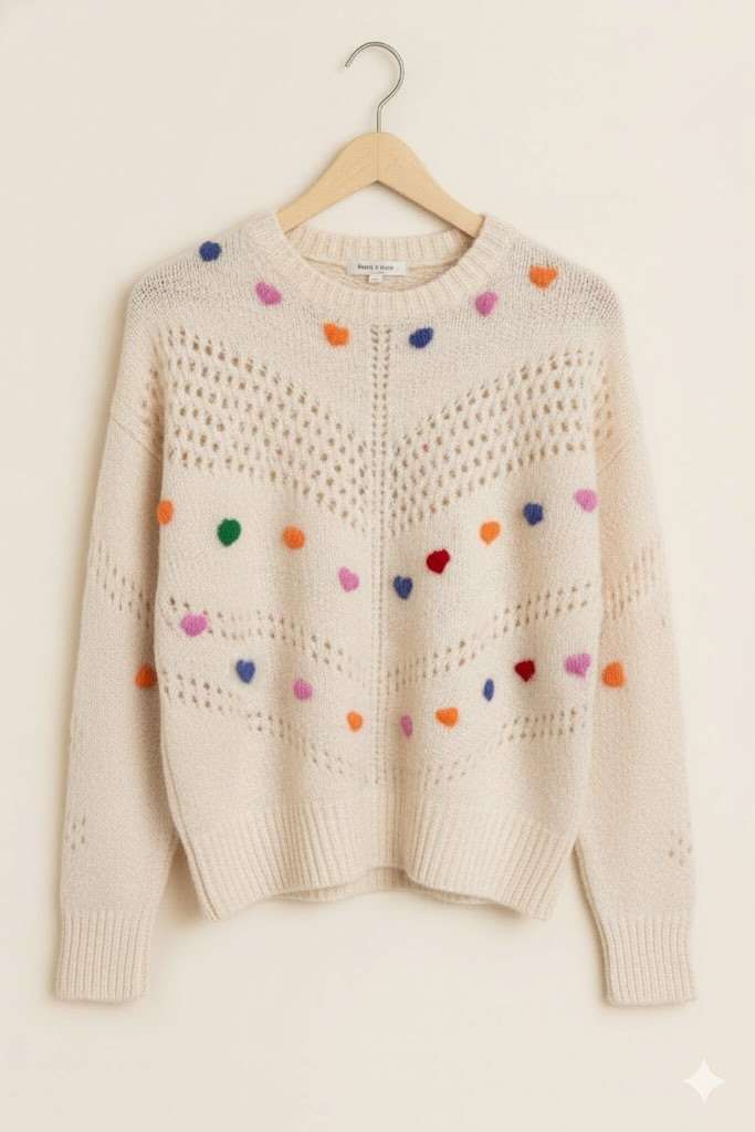 Apportez une dose de joie et de fantaisie à votre garde-robe avec ce pull en maille unique. C’est la pièce parfaite pour illuminer les journées maussades avec son style ludique et son confort inégalable.