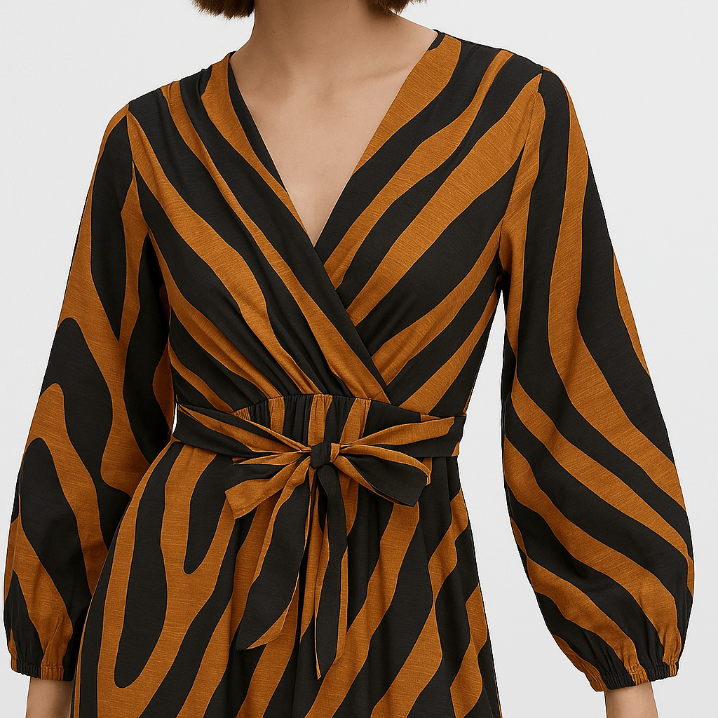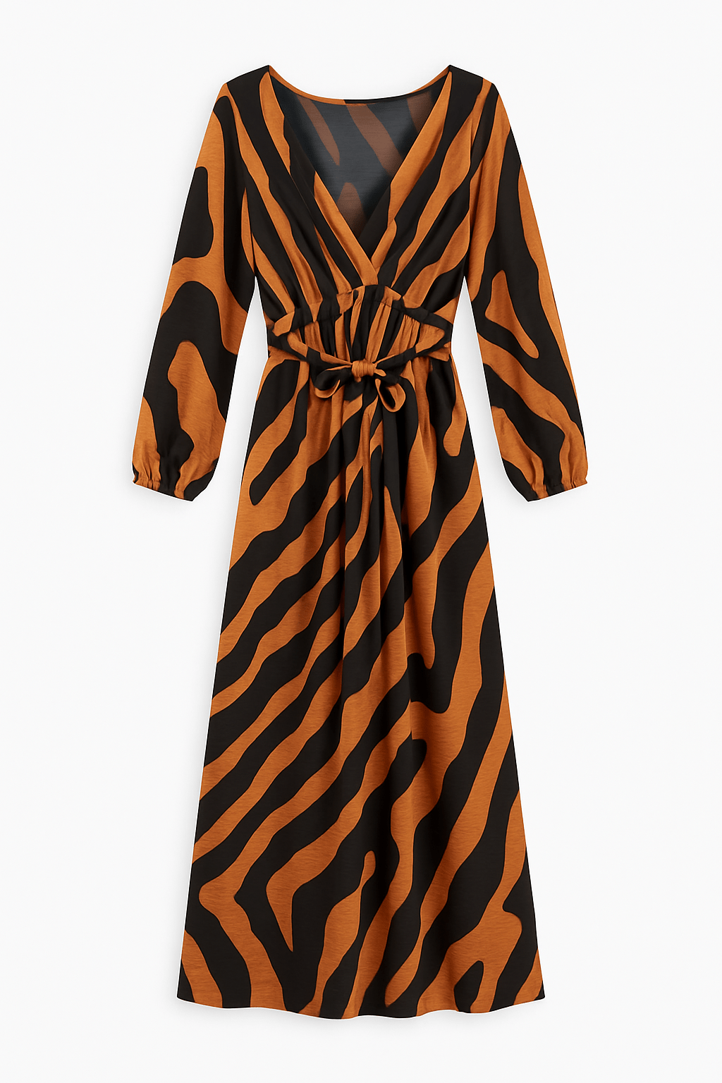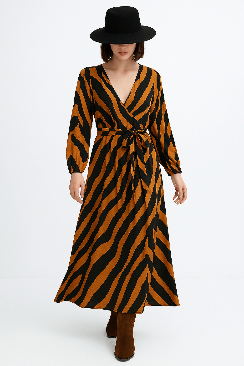 Adoptez une allure sophistiquée et chaleureuse avec cette magnifique robe longue cache-cœur, la pièce parfaite pour votre garde-robe de demi-saison. Son design flatteur et ses couleurs profondes en font une robe longue d’automne incontournable.