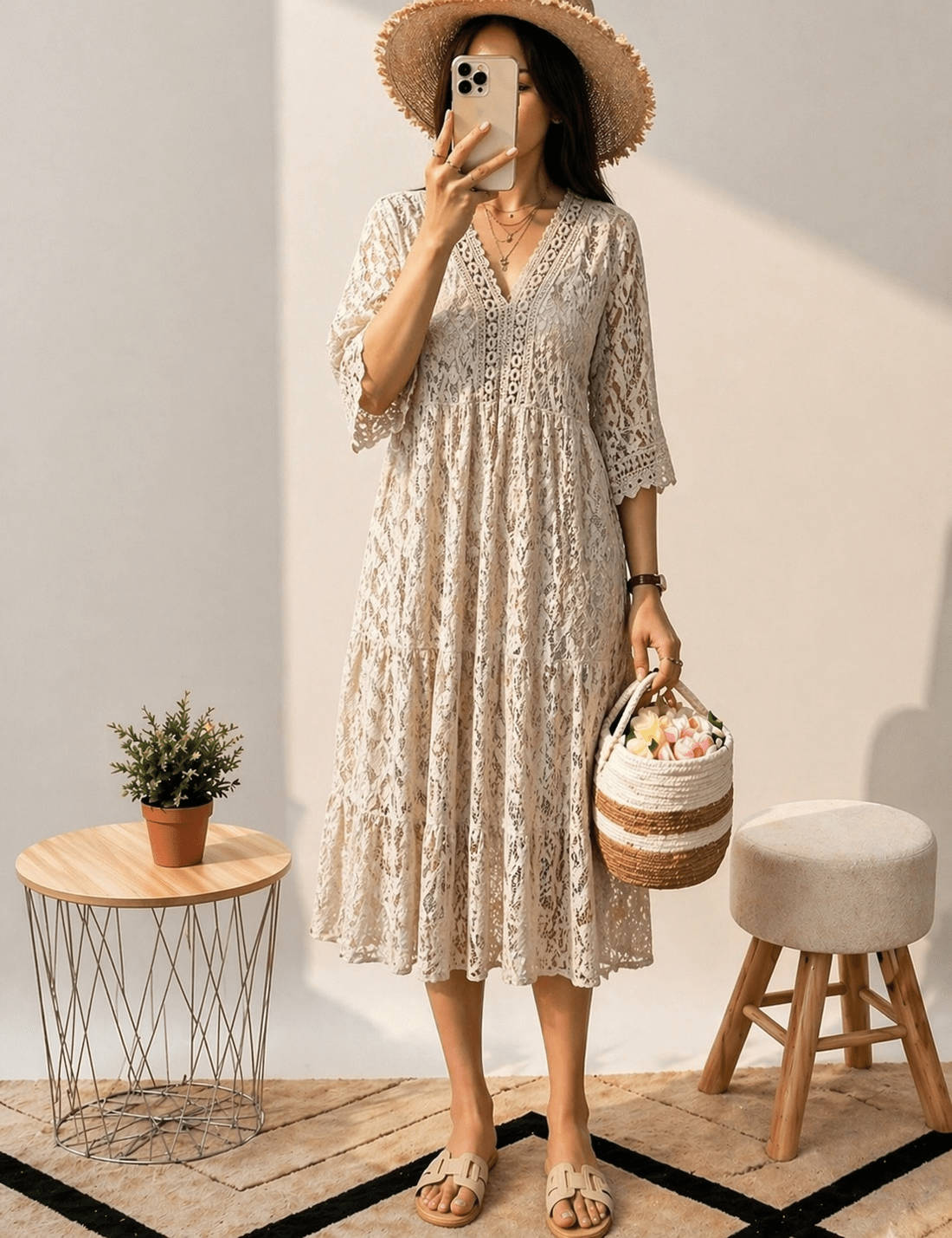 Fabriqué en Italie 🇮🇹 – longueur en dessous du genou – col v – manches courtes – tout dentelle – doublure